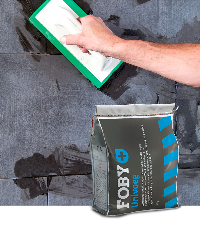 Foby+ Univoeg is a premixed, cement-based jointing mortar for joints in ceramic wall and floor tiles that cures quickly. The addition of plastics makes the product waterproof and permanently flexible.